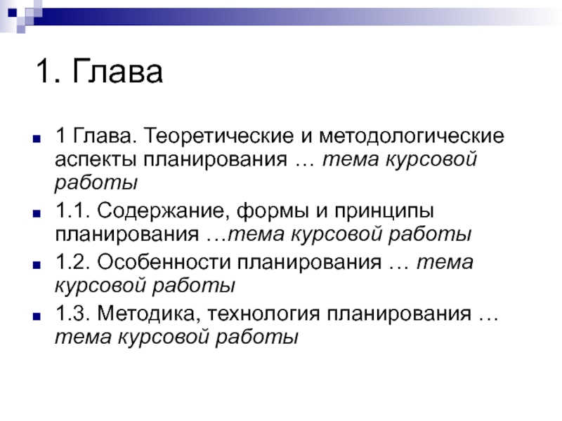 Особенности планирования … тема курсовой работы1.3. Методика, технология планирования … тема курсовой работы
