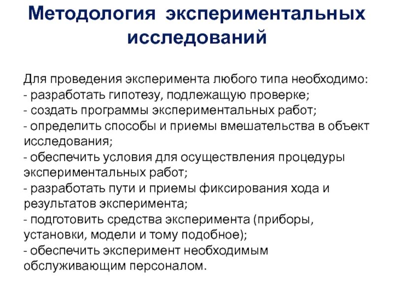 Слайд 14Методология экспериментальных исследований