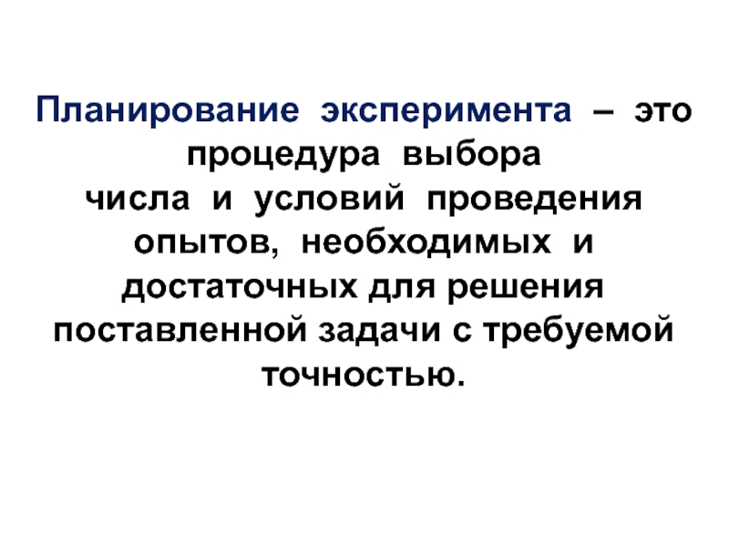Планирование эксперимента – это процедура выбора