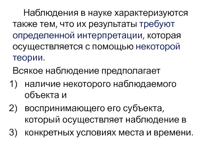 Слайд 6 Наблюдения в науке характеризуются также тем, что их результаты требуют