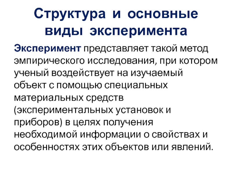 Слайд 10Структура и основные виды эксперимента