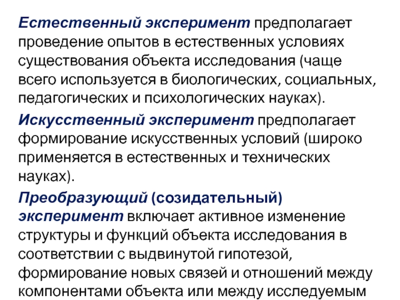 Слайд 12Естественный эксперимент предполагает проведение опытов в естественных условиях существования объекта