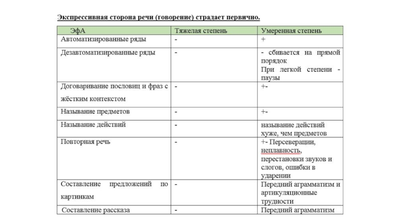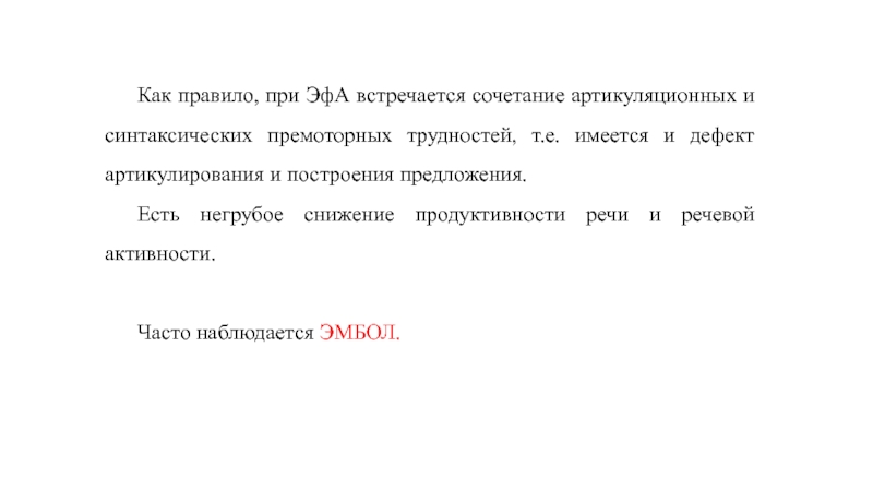 Слайд 19Как правило, при ЭфА встречается сочетание артикуляционных и синтаксических премоторных