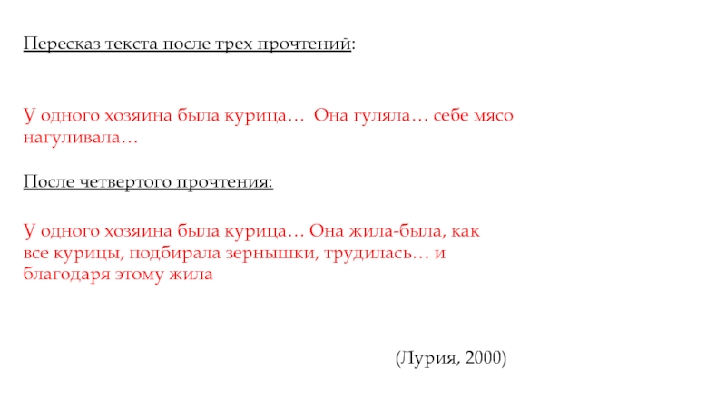 Слайд 14А.Р. Лурия, пересказ кинофильма: