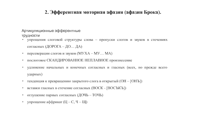 Слайд 82. Эфферентная моторная афазия (афазия Брока).