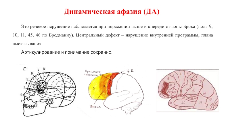 зоны Брока (поля 9, 10, 11, 45, 46 по Бродманну).