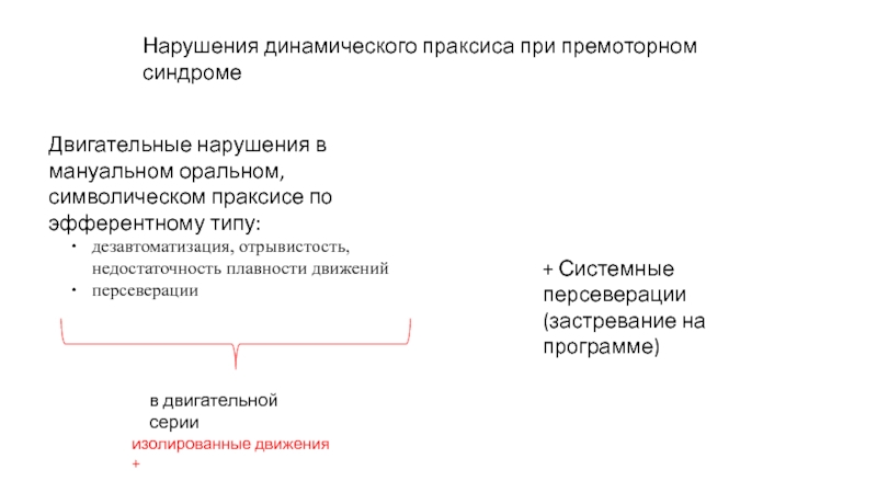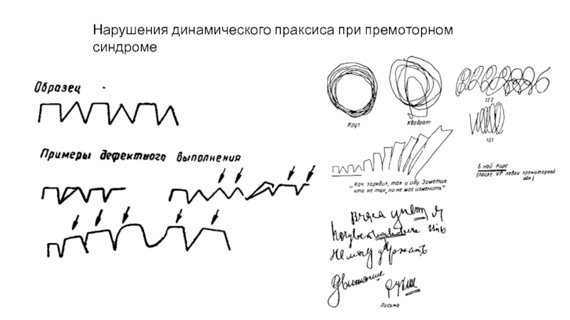 Слайд 3Нарушения динамического праксиса при премоторном синдроме