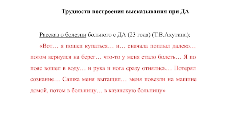 Слайд 42Т.В.Ахутина приводит описание самим больным своих трудностей: