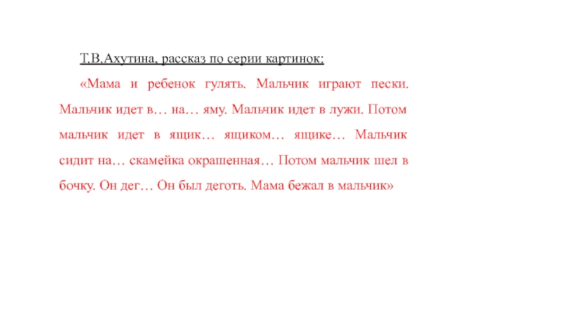 Слайд 18Т.В.Ахутина, рассказ по серии картинок: