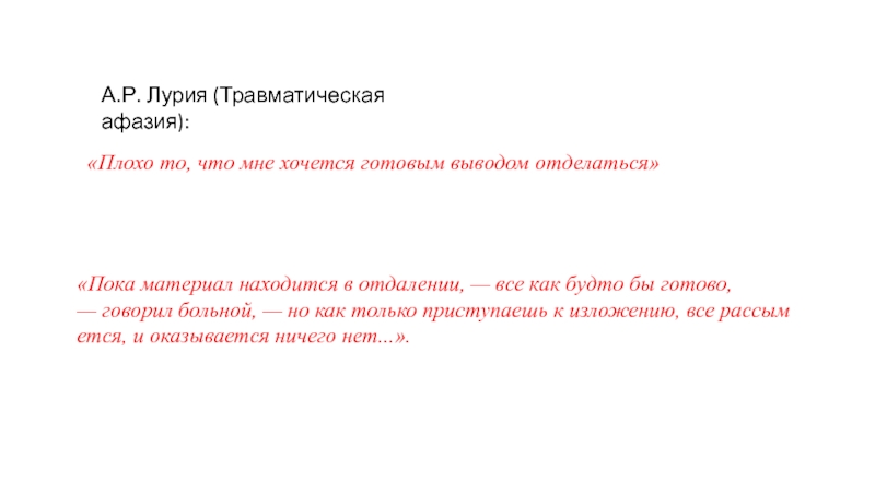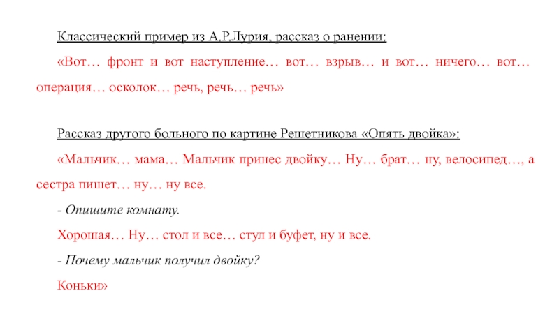 Слайд 13Классический пример из А.Р.Лурия, рассказ о ранении: