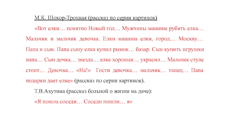 Т.В.Ахутина (рассказ больной о жизни на даче):