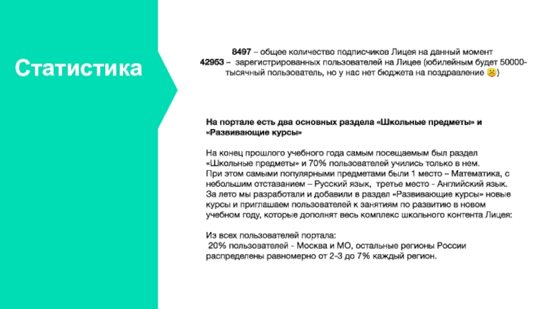 На конец прошлого учебного года самым посещаемым был раздел «Школьные предметы» и 70% пользователей учились только в нем.