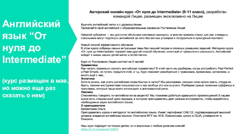 до Intermediate» (5-11 класс), разработан командой Лицея, размещен эксклюзивно на Лицее