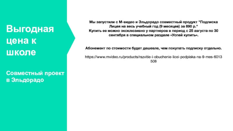 Мы запустили с М-видео и Эльдорадо совместный продукт "Подписка Лицея