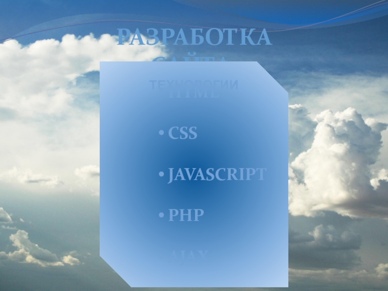 Разработка сайта:ТехнологииHTMLCSSJavaScriptPHPAjax
