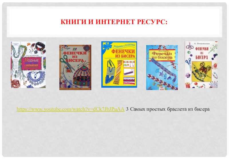 Книги и интернет ресурс:https://www.youtube.com/watch?v=dCk7JbJPuAA 3 Самых простых браслета из бисера
