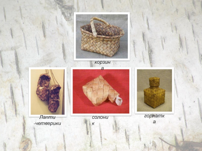 За спиной он носил берестяной пестерь - плетеный заплечный мешок, на ногах лапти, часто сплетенные из бересты. Кузовки, берестянники - короба для муки и меда, лукошки, пастушечьи рожки, канаты для рыболовных снастей, - все это делалось из бересты.