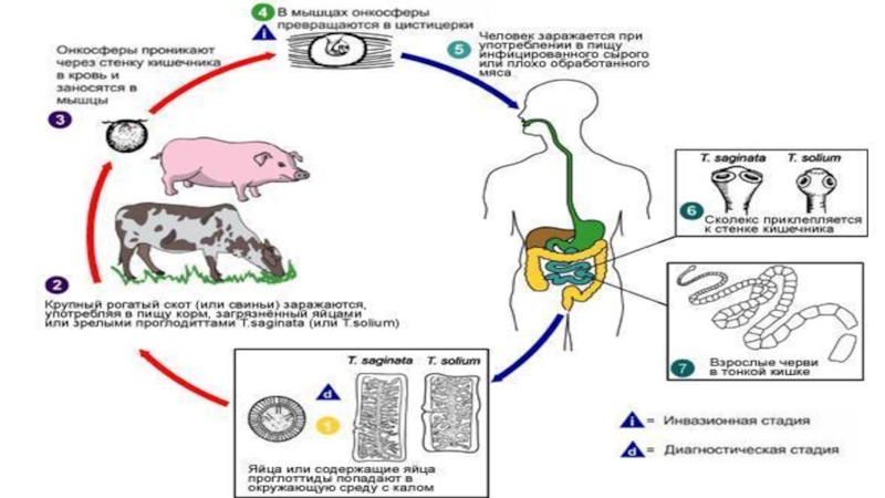 Представители: Бычий цепень ,Свиной цепень, широкий лентец, эхинококк