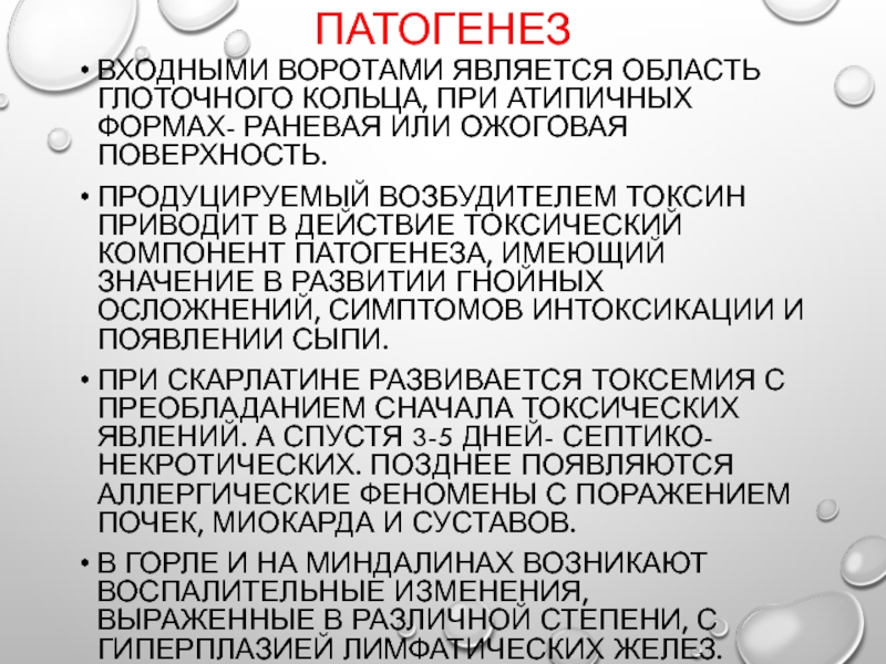 компонент патогенеза, имеющий значение в развитии гнойных осложнений, симптомов интоксикации и появлении сыпи.