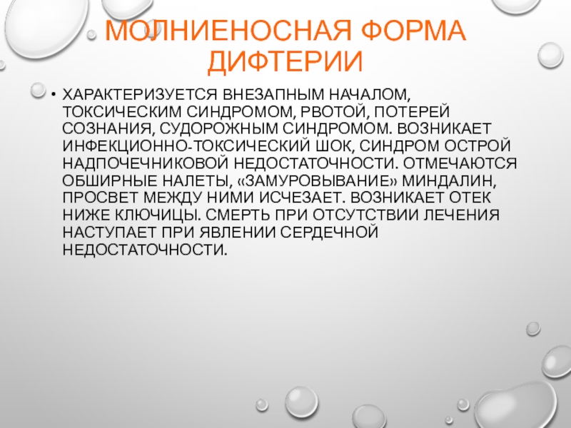 Слайд 20Молниеносная форма дифтерии