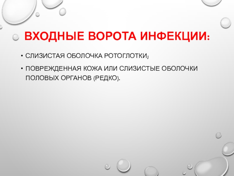 Слайд 50Входные ворота инфекции: