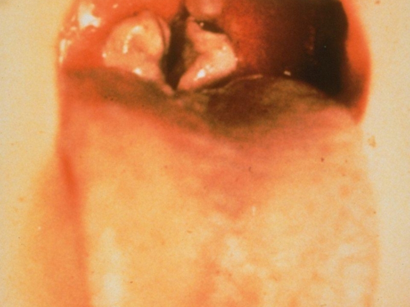Дифтерийный процесс может распространяться из носоглотки, ротоглотки на гортань.