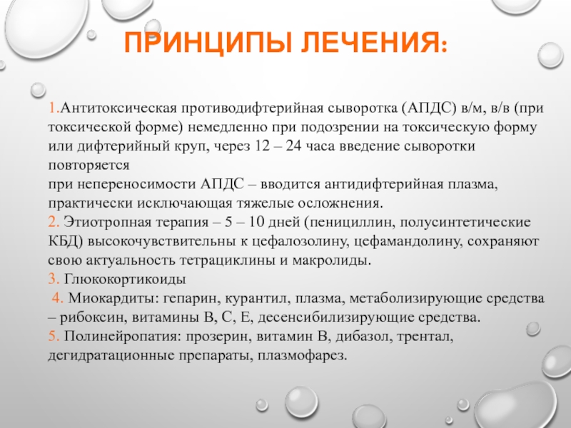 1.Антитоксическая противодифтерийная сыворотка (АПДС) в/м, в/в (при токсической форме)
