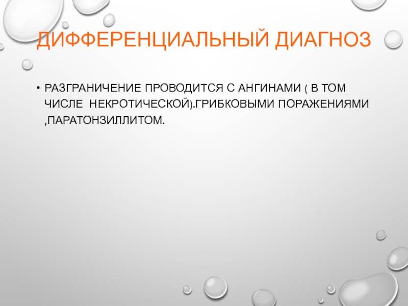 Разграничение проводится с ангинами ( в том числе некротической).грибковыми