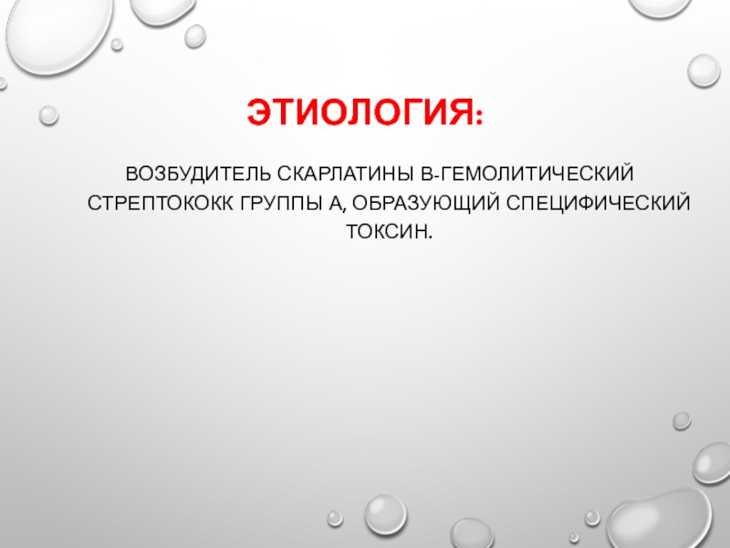 Возбудитель скарлатины β-гемолитический стрептококк группы А, образующий специфический токсин.
