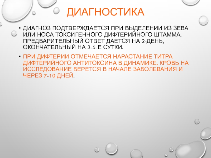 Диагноз подтверждается при выделении из зева или носа токсигенного дифтерийного
