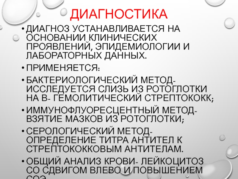 метод- исследуется слизь из ротоглотки на В- гемолитический стрептококк;