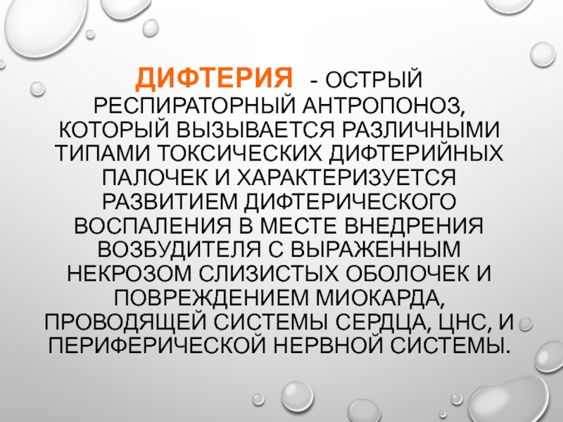 Слайд 4Дифтерия - острый респираторный антропоноз, который вызывается различными типами токсических