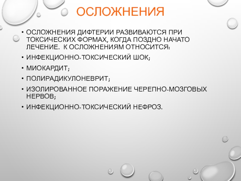 Осложнения дифтерии развиваются при токсических формах, когда поздно начато лечение.