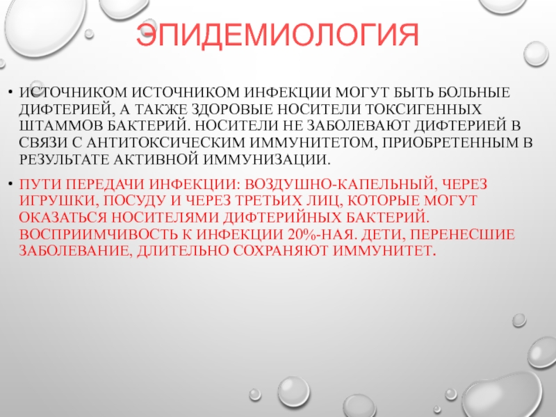Источником Источником инфекции могут быть больные дифтерией, а также здоровые