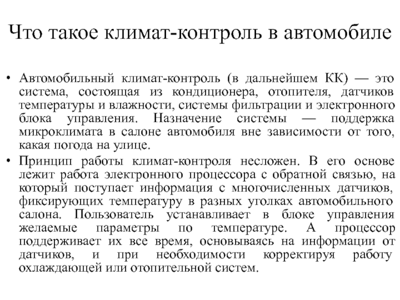 Автомобильный климат-контроль (в дальнейшем КК) —