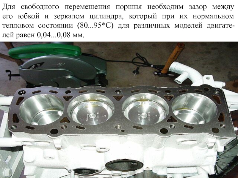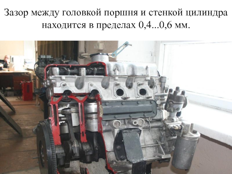 Слайд 23Зазор между головкой поршня и стенкой цилиндра находится в пределах