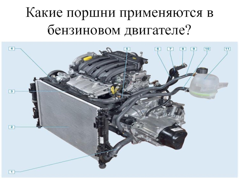 Слайд 16Какие поршни применяются в бензиновом двигателе?