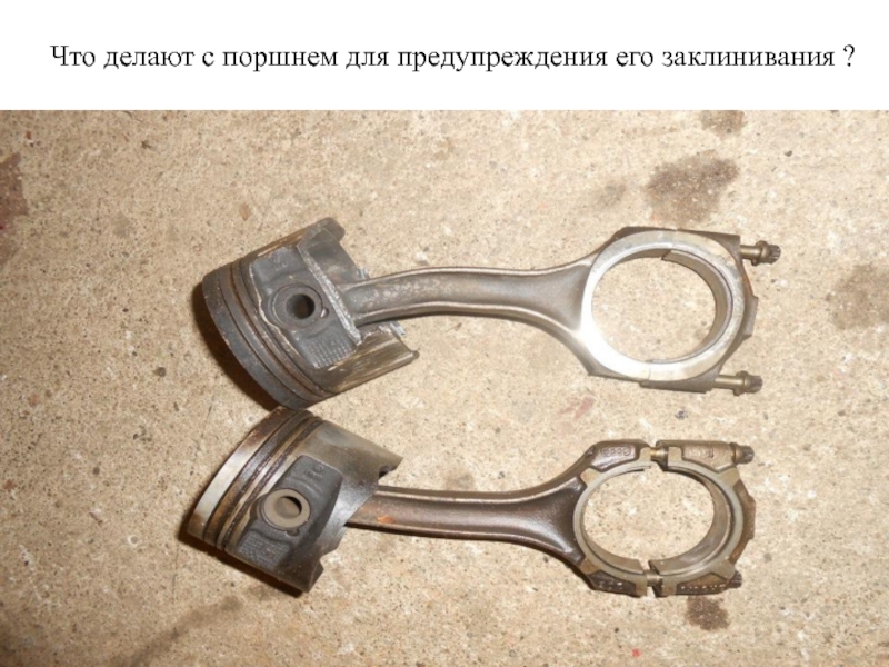 Слайд 26Что делают с поршнем для предупреждения его заклинивания ?