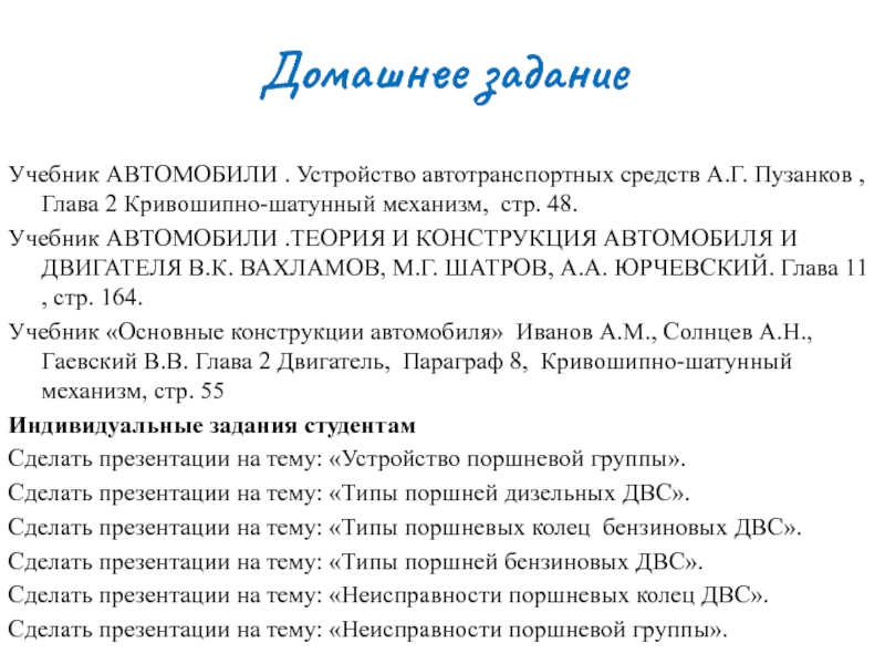 Сделать презентации на тему: «Устройство поршневой группы».