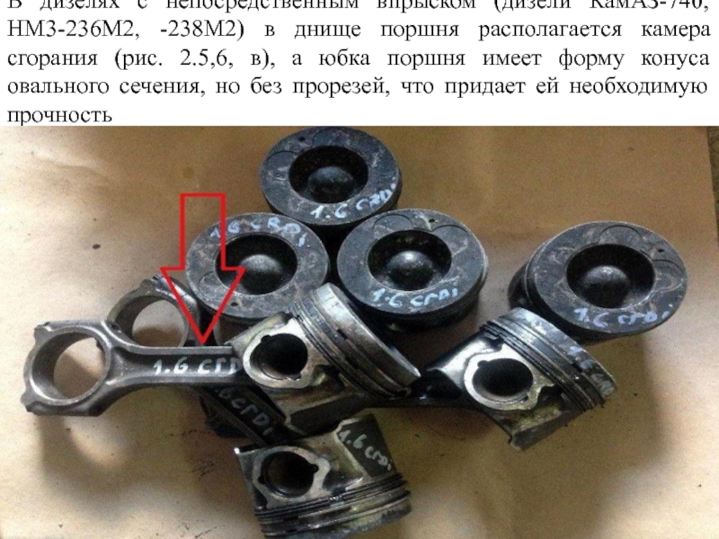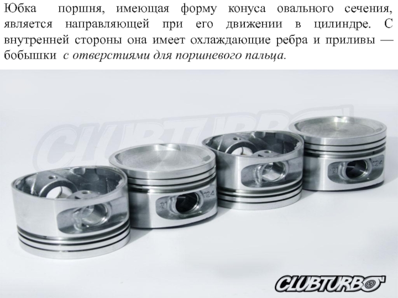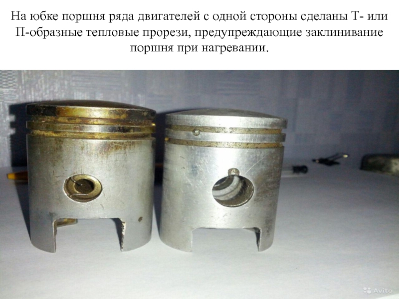 Слайд 27На юбке поршня ряда двигателей с одной стороны сделаны Т-