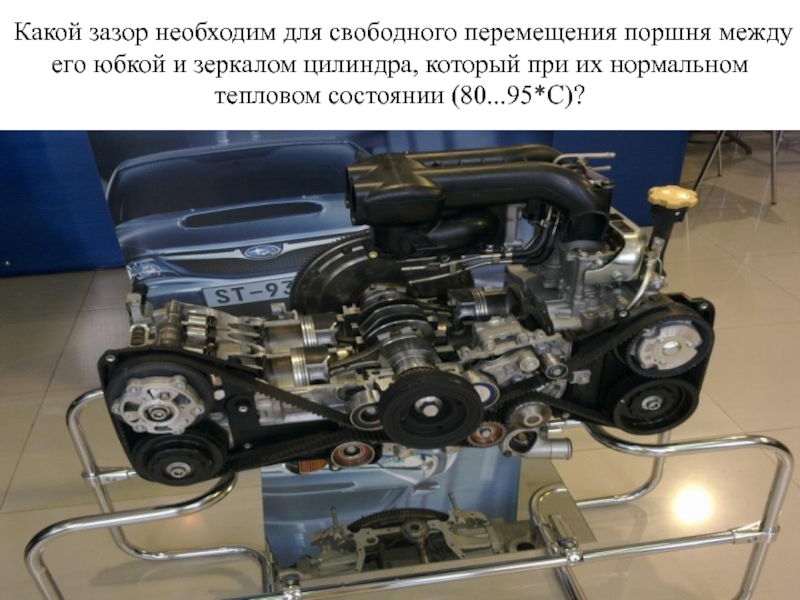 Слайд 30Какой зазор необходим для свободного перемещения поршня между его юбкой