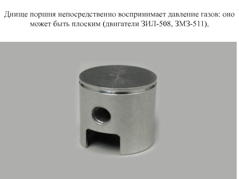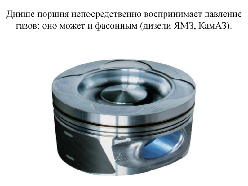 Слайд 11Днище поршня непосредственно воспринимает давление газов: оно может быть плоским