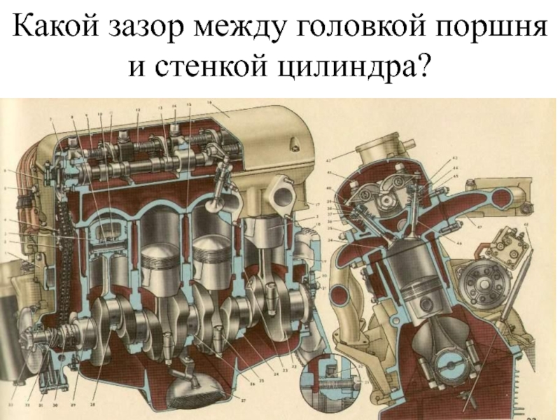 Слайд 22Какой зазор между головкой поршня и стенкой цилиндра?