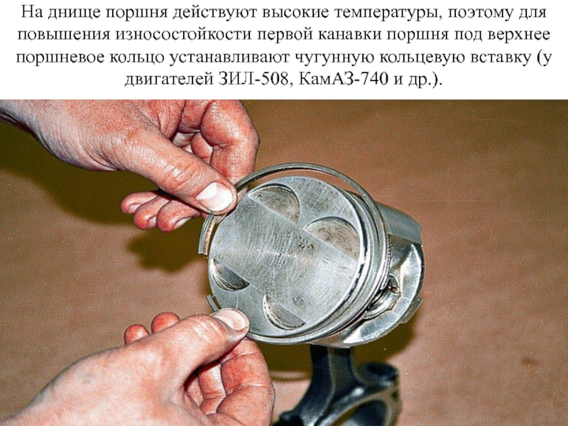 Слайд 37На днище поршня действуют высокие температуры, поэтому для повышения износостойкости