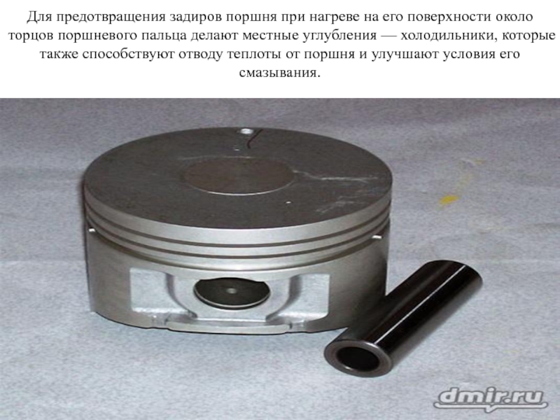 Слайд 29Для предотвращения задиров поршня при нагреве на его поверхности около