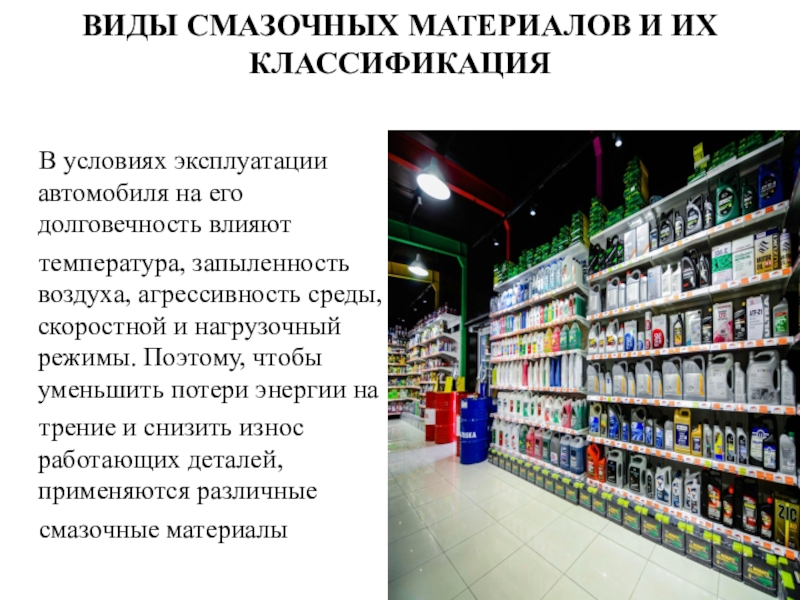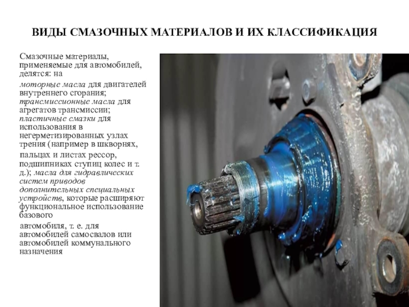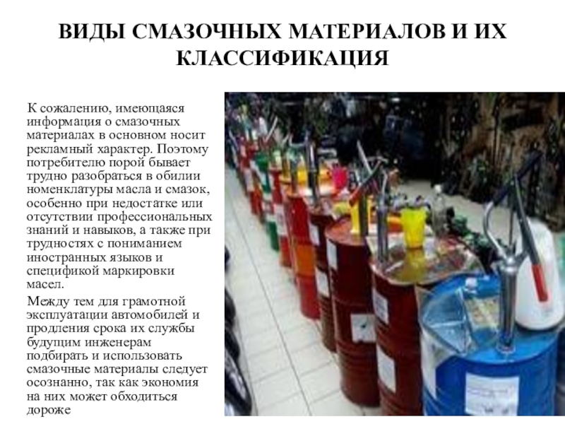 Слайд 18ВИДЫ СМАЗОЧНЫХ МАТЕРИАЛОВ И ИХ КЛАССИФИКАЦИЯ