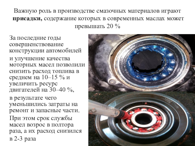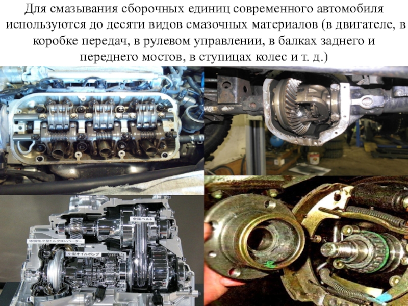 Слайд 15Для смазывания сборочных единиц современного автомобиля используются до десяти видов