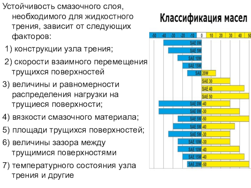 Слайд 55Устойчивость смазочного слоя, необходимого для жидкостного трения, зависит от следующих