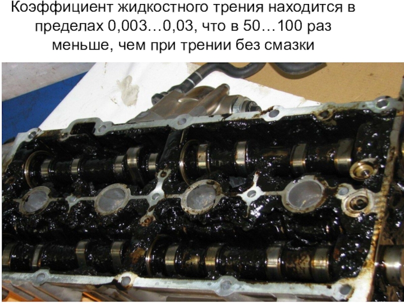 Слайд 54Коэффициент жидкостного трения находится в пределах 0,003…0,03, что в 50…100