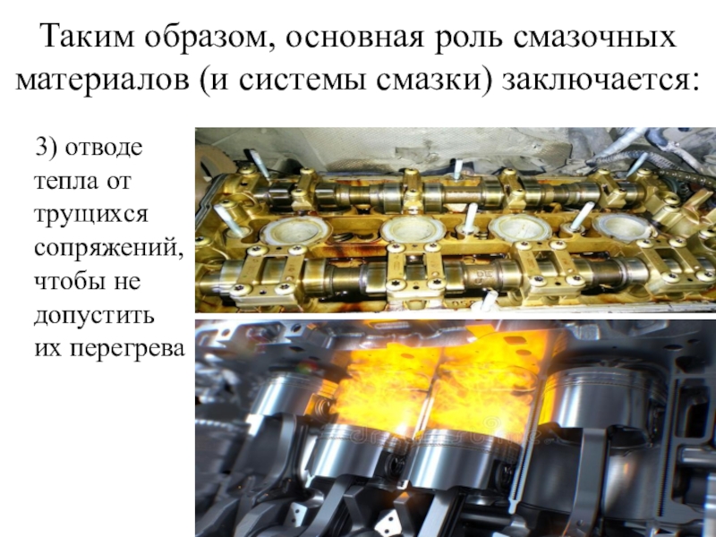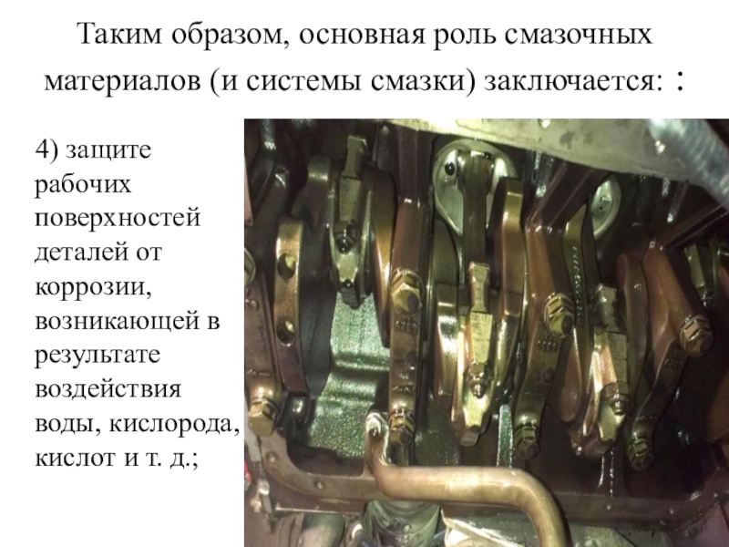 Слайд 10Таким образом, основная роль смазочных материалов (и системы смазки) заключается: